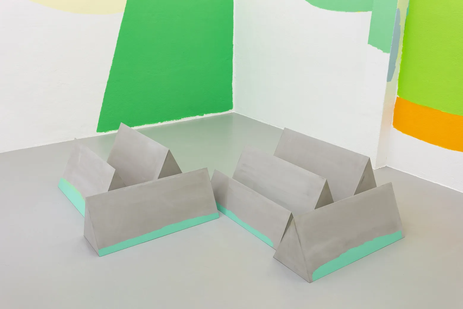 The word “tactil” derives from the ancient Greek "haptikós" which literally means “able to come in contact with”. Herrero's ability to come in contact with the surroundings goes far beyond simple physical contact, on the contrary it often begins with the simple gaze that delicately, brushes the surfaces that compose the cities and captures their most intense vibrations. Tactiles is conceived as a site-specific painting, where primordial architectural structures give a new rhythm to the use of the exhibition space, that becomes a support to the artist’s practice where colors seem to emerge spontaneously from the space itself, inserting landscapes within landscapes and creating something that seems to have always been there.