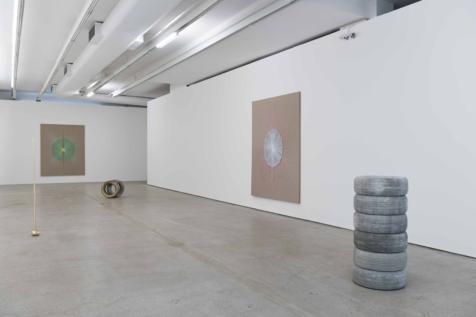 Alexandre da Cunha apresenta uma nova série de obras de parede e esculturas de concreto realizadas a partir de moldes de pneus usados. Continuando sua pesquisa com materiais do cotidiano, o artista apresenta trabalhos de parede em grande escala e outras esculturas que utilizam materiais fundidos, um aspecto novo no seu trabalho.