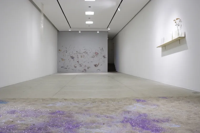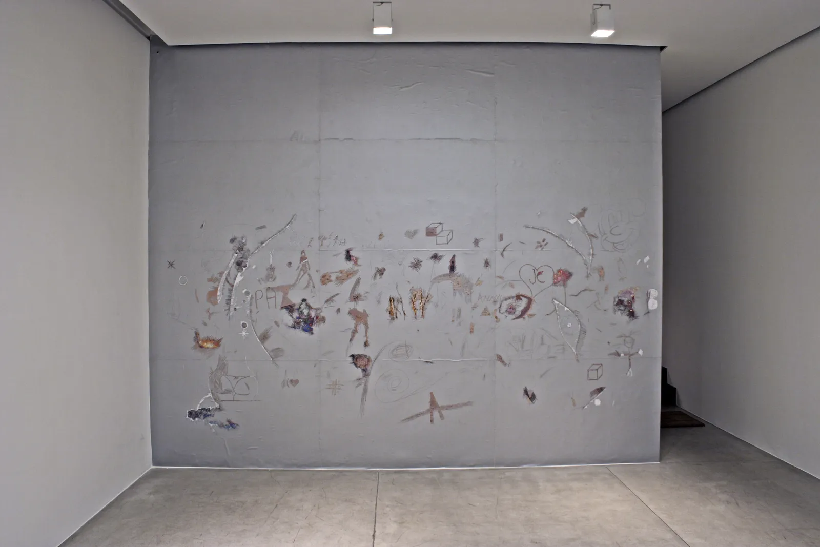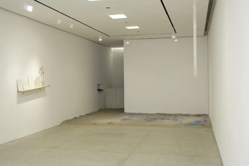 No piso térreo da galeria, o artista apresenta uma instalação que consiste em um papel de parede de caráter interativo e um tanque de areia. O papel é revestido por uma tinta prateada que pode ser arranhada e retirada pelo público, revelando imagens, como no princípio da “raspadinha” (aqueles cartões de loteria). Neste ambiente também são mostrados desenho feito com correntes de prata e uma série de desenhos em papel que tratam de questões como instabilidade e desorientação espacial.