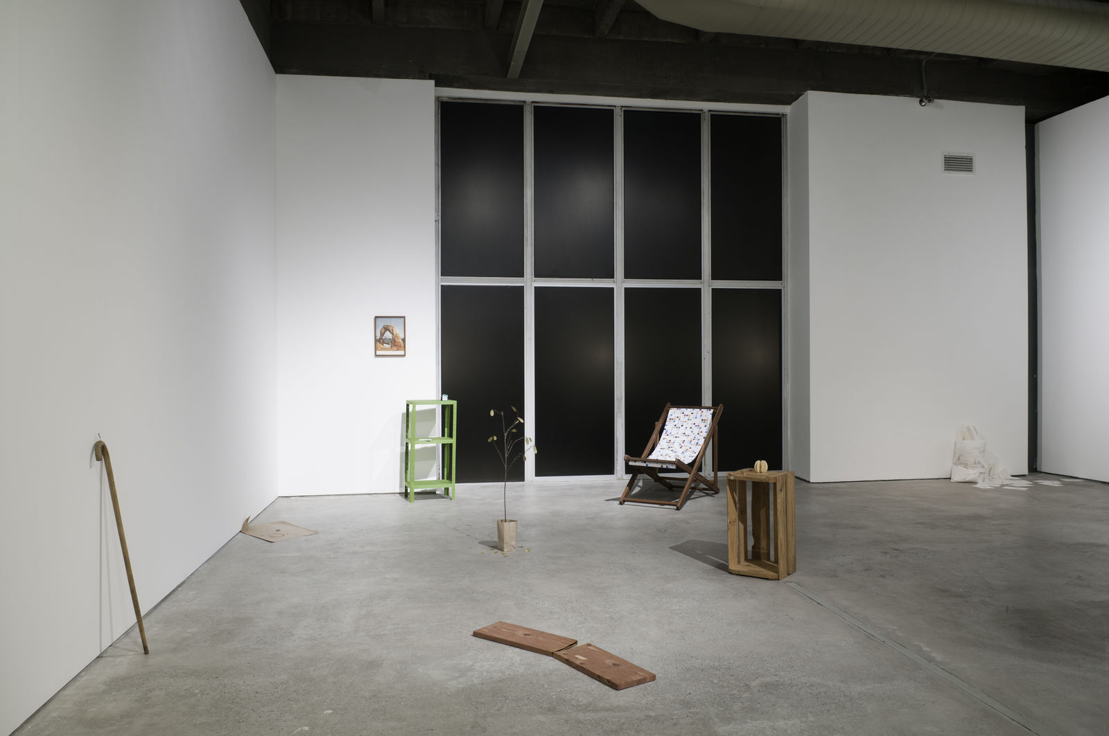 17. Dibujo de un gancho, 2011 Papel 23,5 x 42 x 16 cm …assim mesmo, forma e estrutura: clip, elástico, 8, infinito, mola e circulo 18. Paisaje, 2011 Imagem encontrada, moldura de madeira 37,5 x 28,5 x 4 cm Imagem para calendário. Vento, água, cupim.